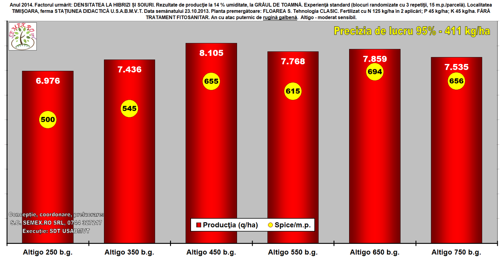A fost semănat soiul Altigo la 6 densităţi: 250, 350, 450, 550, 650, 750 b.g./m.p.
